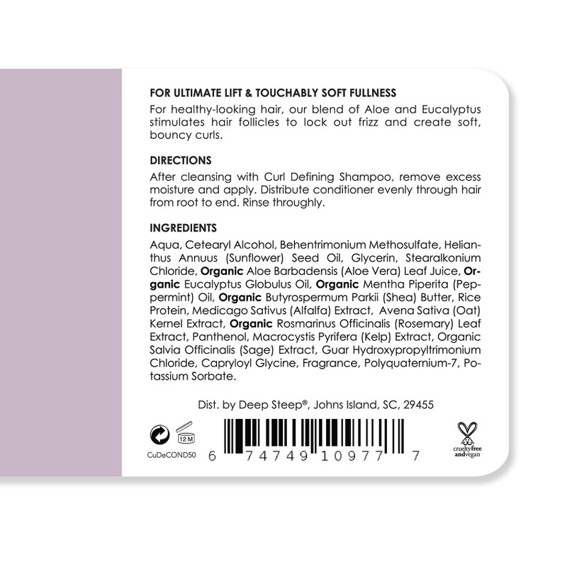 For healthy-looking hair, our blend of Aloe and Eucalyptus stimulates hair follicles to lock out frizz and create soft, bouncy curls.