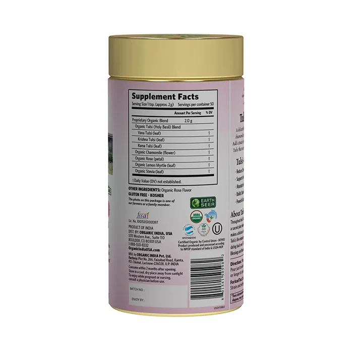 Organic India's foundational herb, adaptogenic Tulsi, combined with soothing rose and chamomile. Calming and centering with a divine fragrance.