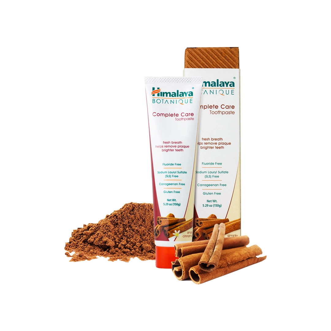 Himalaya Simply Cinnamon Complete Care Toothpaste is free from Fluoride, Triclosan, Carrageenan, SLS, and Gluten, and loaded with the foamy texture and great taste you love. With regular brushing, it helps fight plaque, whitens teeth, and leaves you with a clean-feeling mouth and extra fresh breath.