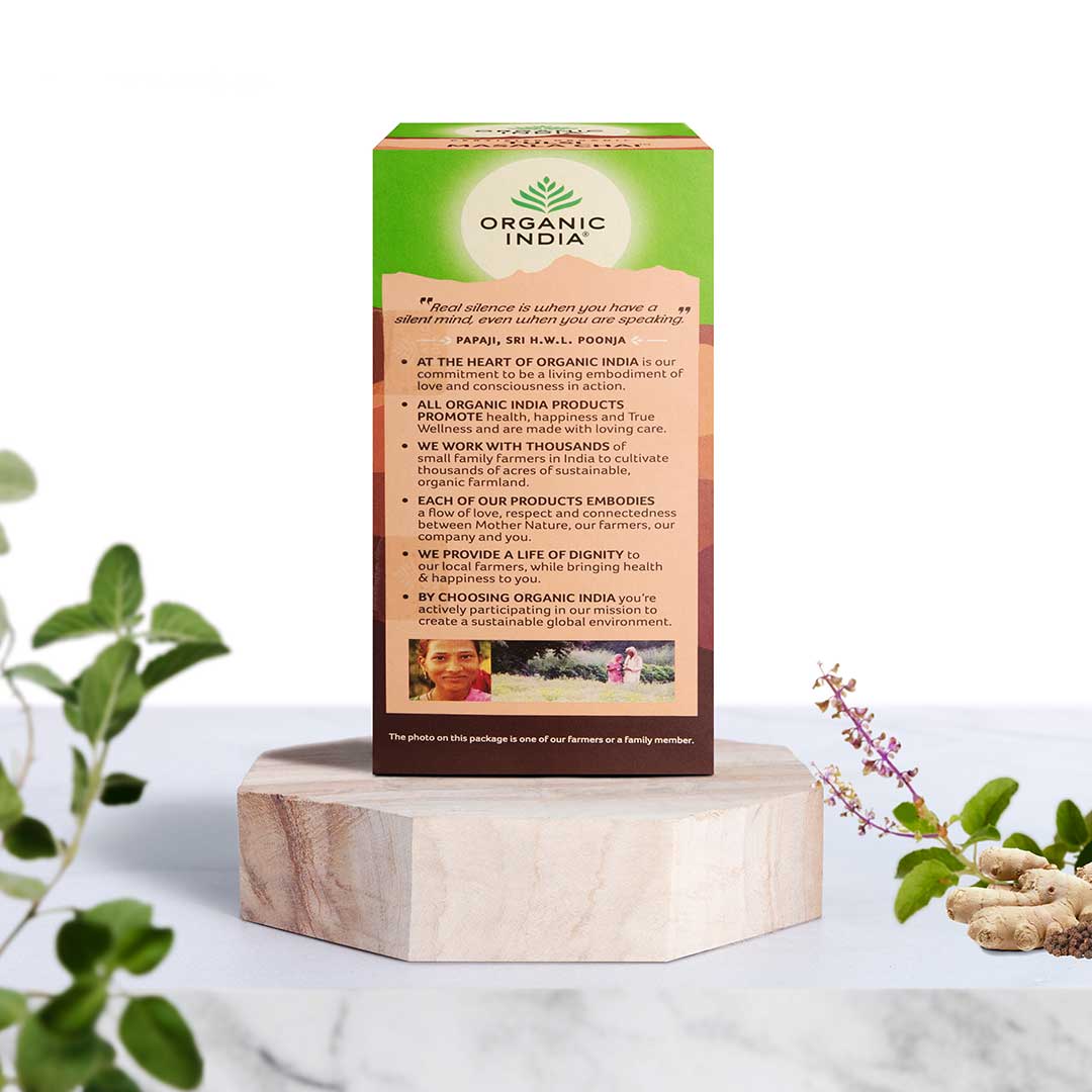 A delicate blend of freshly ground spices (masalas), premium Assam Tea & Tulsi, this cup of tea will transport you! The sweet and spicy notes with a comforting aroma make it an exotic, unmistakable experience. This premium black tea is low in caffeine, exceptionally calming, and the perfect pick-me-up.