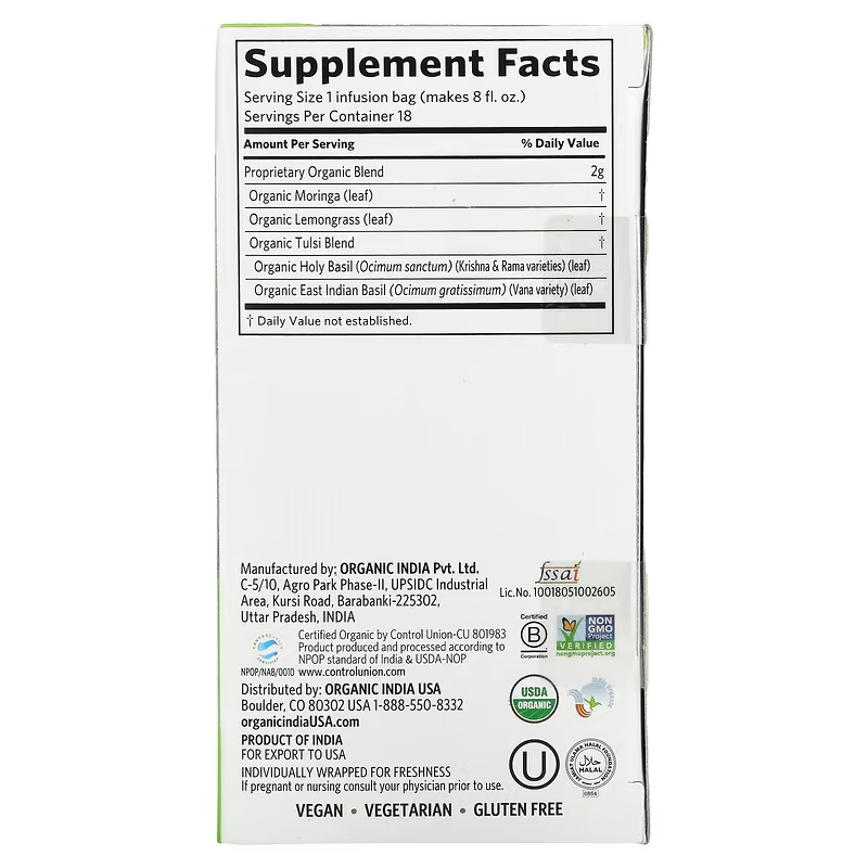 Incomparable Tulsi and powerful Moringa blend with Lemongrass to provide a natural energy boost for enhanced overall well-being.