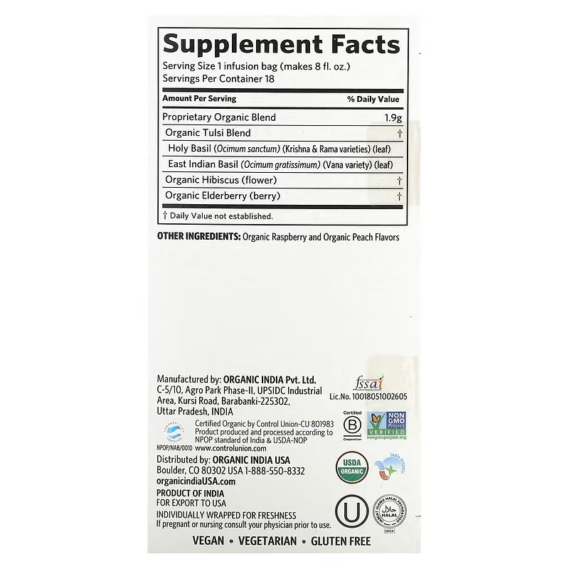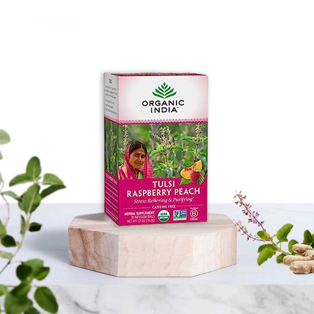 Three sacred varieties of immune boosting Tulsi and tangy Hibiscus with the essence of succulent Raspberries will enliven your day.