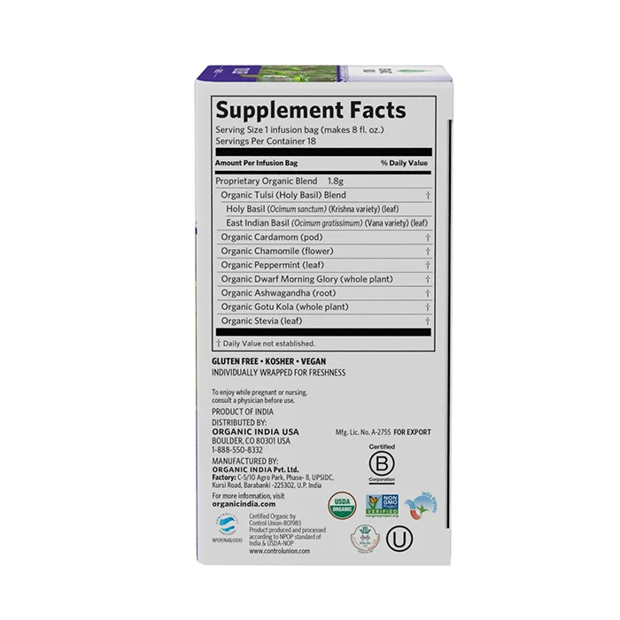 Organic India's foundational herb, adaptogenic Tulsi, combined with soothing Ashwagandha to support restful sleep.